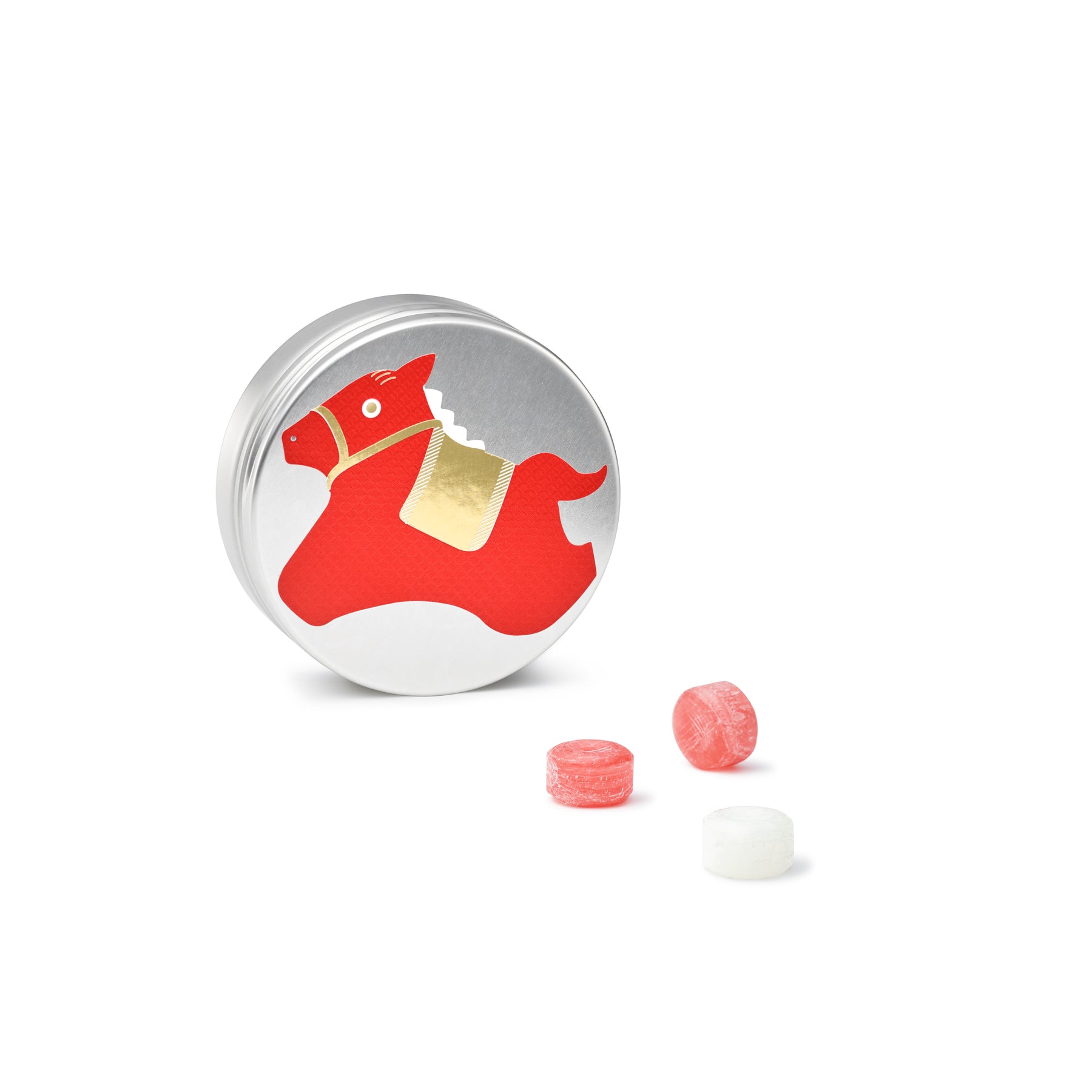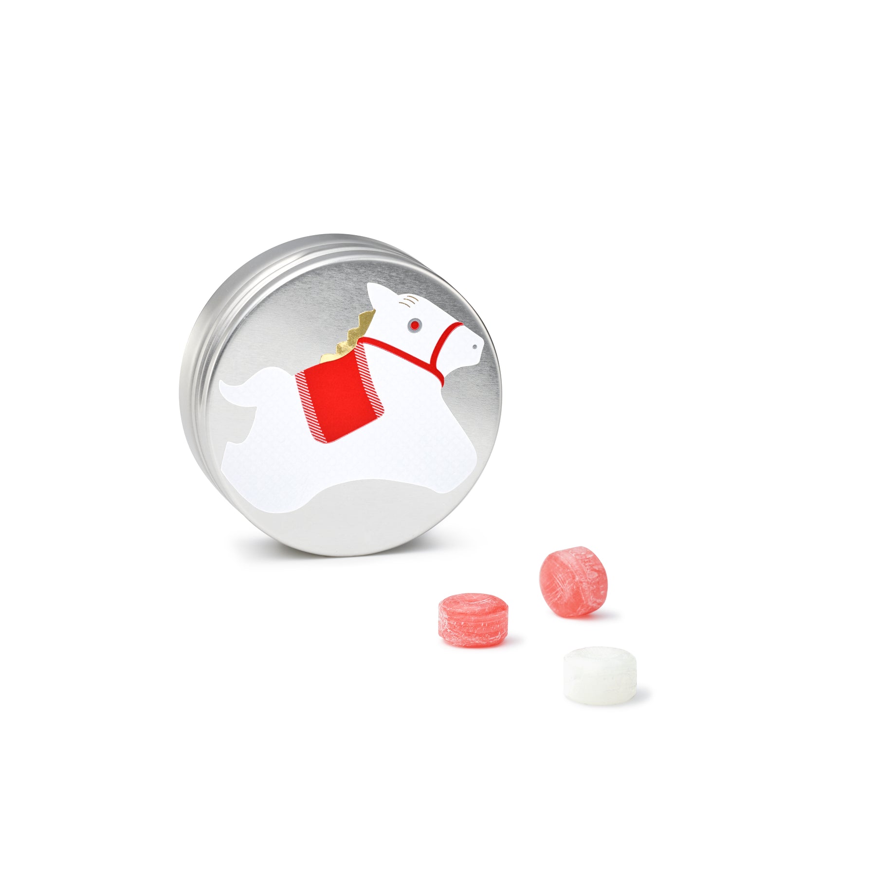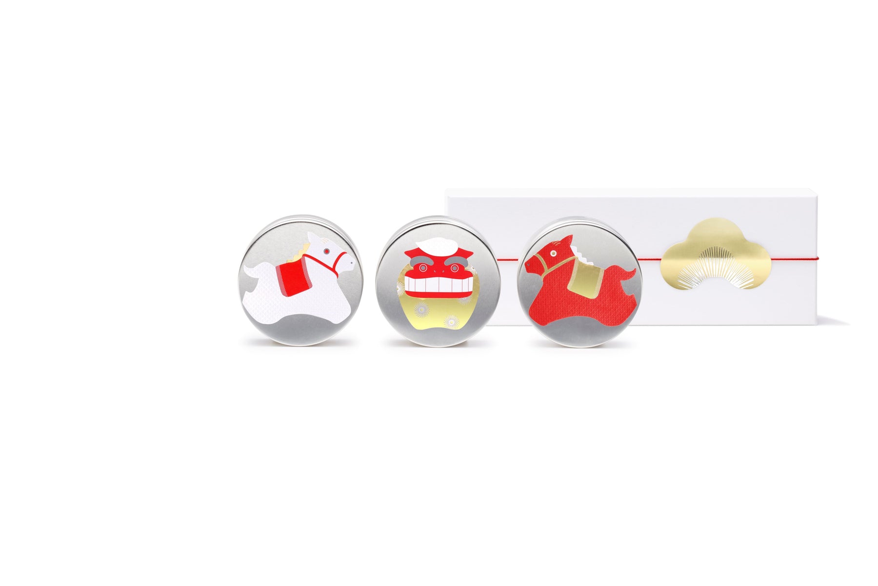 小さな缶に入った、小粒キャンディ3缶セット。毎年大人気の干支モチーフ缶、2026年は「うま(午)」デザイン。外箱には、おめでたい松のラベル付き。「紅うま」「白うま」「獅子舞」と特別なギフトボックスがセットになった、新年のご挨拶にもぴったりな数量限定のセット商品。3缶ともアップル味・ヨーグルト味の紅白カラーの2種アソートキャンディです。※無果汁<セット内容>①縁起缶キャンディ 紅うま・・1個②縁起缶キャンディ 白うま・・1個 ③縁起缶キャンディ 獅子舞・・1個④縁起缶3個BOX・・・1箱 箱サイズ:縦193×横68×高さ25(mm)箱素材:紙※Kanro POCKeTでご購入される場合・送料:1回のご注文につき800円(税込)を頂戴いたします。※沖縄県宛の送料については、こちらをご確認ください。・商品は決済確認後、通常7営業日以内でお届け予定です。(決済完了メールはお送りしておりません。)・よくある質問はこちらよりご確認ください。