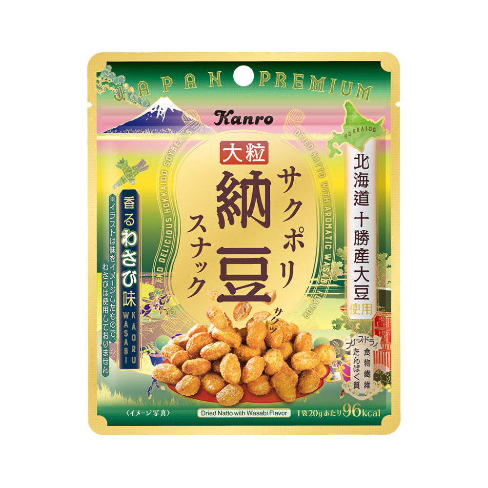 北海道十勝産大粒大豆を使用した、サクッとした食感が美味しいわさび味のフリーズドライ納豆スナックです。