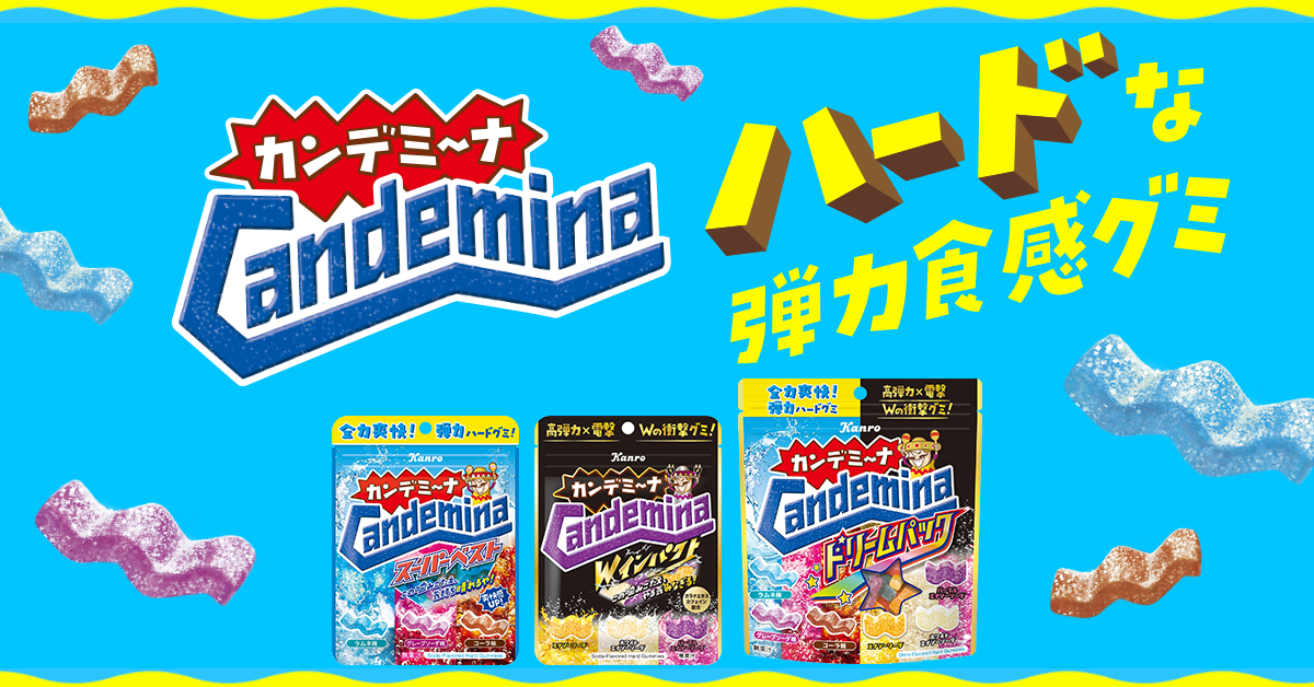 水飴(国内製造)、砂糖、ゼラチン、デキストリン/酸味料、増粘剤(加工デンプン)、炭酸カルシウム、着色料(紅花黄、野菜色素、クチナシ、スピルリナ青)、香料