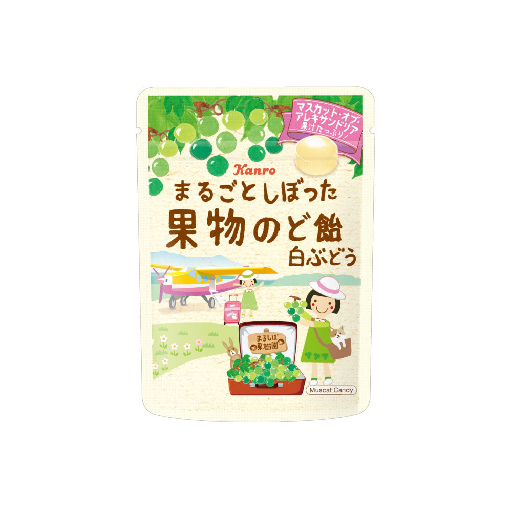 まるごとしぼったマスカット・オブ・アレキサンドリア果汁をたっぷり使用した、かわいいコンパクトサイズののど飴です。