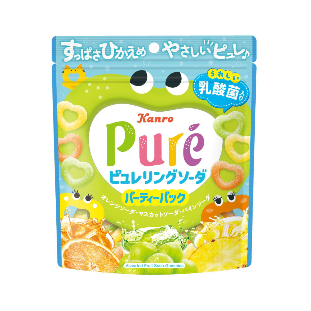 3種のフルーツソーダの味わい、ハートがいっぱいパーティー気分の大容量パック。